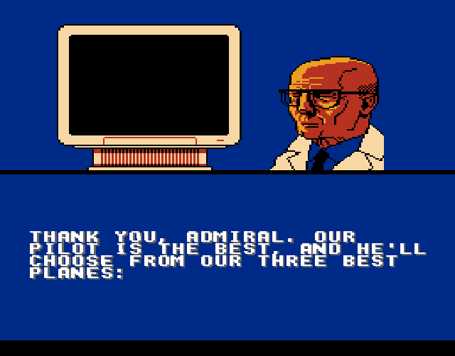 After 3 more escapades (featuring a variety of other bombing targets like navy vessels and the like), you win Mission One, and Newron gets off his butt in order to give you some upgrades. You get an anti-air laser for the F-18