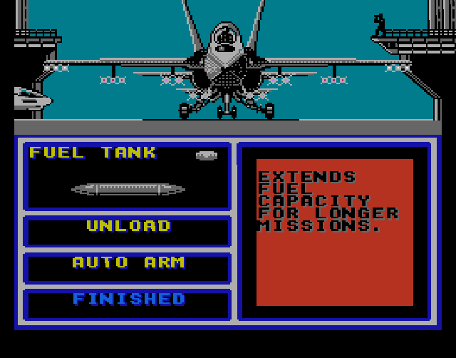 So at the start of each sub-mission (4 sub-missions per operation) you are given a ground target, and a set number of increasingly harder opponents to dogfight as you fly to it. Before you can do that however, you must choose which fighter to fly. Usually you can go with the one that's automatically highlighted, but sometimes variety has its benefits (for example the F-18 and Harrier are better geared towards bombing runs, with the Harrier having a definite edge on naval operations).