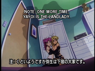 Hiroe will be joined primarily by Mayaka and Yoyoi, referred to initially as "big sister" and "mom" respectively. These relations might seem a bit disgusting to most at first, which may explain the changes in the roles after the first episode, but it feels done more for comedic purpose. From episode 2 on, Hiroe still refers to both characters in the same way, but every time she does, subtitles in both Japanese and English pop up to comedically let us know that "Mayaka is definitely not Hiroe's sister, she's just a neighbor in the same building" and "Yayoi is honestly just the landlady, nothing more!" It's a simple and goofy little gag that's just one part of the show's cheesy charm. Funnier than anything in