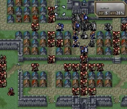 Once you escape the dungeon, your party finds itself inside the castle. Eyvel and Nanna are inside the arena, attempting to fend off the troops Riedrick has sent inside. After telling Eyvel that he would let her see her daughter, Riedrick unleashes Mareeta into the arena with a cursed sword that is supposed to deprive her of free will and turn her into a killing machine. It doesn't work out exactly as planned - Mareeta and Eyvel hesistate to attack each other. Leaf finally arrives to save Nanna, but he is too late to save Eyvel and Mareeta, as Eyvel is turned to stone and Mareeta is taken away by Bishop Berdo. The level itself isn't particularly difficult, and the objective is simply to escape the castle. But FE5 manages to make it challenging anyway by forcing the player to rescue Nanna and ensure Mareeta's survival (she's a great unit and joins your group later in the game) before the rest of your party can complete their escape.
