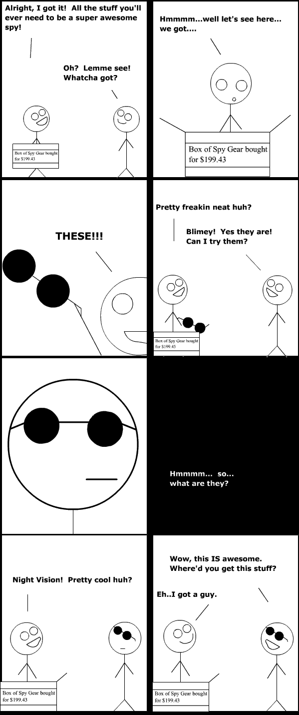 This one's based loosely on a dream I had a couple weeks ago. Not much to explain. I went for the quick and dirty (read: stupid) punchline. I like how the character expressions turned out.