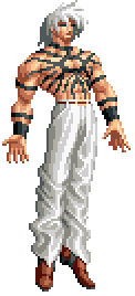 Goenitz's solitary goal in life is to resurrect Orochi and basically cleanse the earth of all human life. On the plus side, at least he's polite. Aware of Chizuru's intentions, he spends most of KoF '96 lurking in the shadows and watching events unfold until both Kyo and Chizuru are both out in the open together. The opportunity to off both the Yata and Kusanagi heirs at once is too much for Goentiz to resist and he strikes, making what is possibly the most impressive SNK BOSSMAN entrance in KoF history.