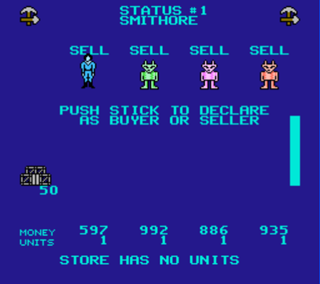 You see, there are these machines... that look like mules, incidentally... and you can use them to mine Smithore (a precoius mineral used to make more M.U.L.E.s), grow food, and make energy. But you also need to trade with your opponents. And prices go up and down. And if you can't make or buy enough food or energy, it hurts your production. And you can use your excess time for each turn to Hunt the Wumpus for extra cash. And you gotta maximize your time and production by buying the right plots of land. And there's disasters, and...