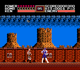But getting back to the game, you get stars from fallen enemies and you can upgrade yourself. With two stars, you can kick really fast, and three stars you get a shockwave attack that can be used once, but I never figured out how to do. At four stars, you can punch really fast. If you fill the stars, the screen flashes and Ken's shirt explodes like in the anime to represent that he is at full power.