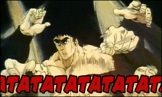 Ken's punches and kicks make the same kiai kinda sound in the anime, downgrated to 8-bit of course, so instead of UWATATATATATATA it sounds like a high-pitched BAPBAPBAPBAPBAP. You find yourself expecting something like