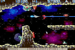 FreezingInferno - Gradius and the Game Boy never really got along. There were two on the brick Game Boy and neither of them were actually all that good. Decent, but not the best. Gradius Galaxies comes the closest to being like a true Gradius game, and it's got four ships for you to play around with! It's about as complex as Gradius II, but Gradius II is my favorite one. Gradius Galaxies was the first Gradius game I actually beat, and it started the love-hate relationship I've got with this series. I mean, this thing won't make people look at you funny. Not like if you were playing Otomedius. I beat that shit. Twice. Beat Gradius Galaxies instead.