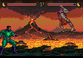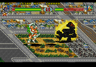 Pauncho Smith - This Neo Geo original had ports on both the SNES and Genesis. The SNES port was a good deal more faithful to the original, which meant tedious side-scrolling stages, only three playable monsters to choose from, and a ball-busting difficulty level. The Genesis port pared things down to the point where it played more like your typical arcade fighter, sans the scrolling areas and with all of the monsters at your disposal (save for the last boss fight, replaced with a doppelganger showdown). This made for a simpler, yet more enjoyable experience. And shoot, if there were two things I couldn't get enough of in my youth, it was giant monsters and fighting games. King of the Monsters 2 didn't have to try very hard to win me over.