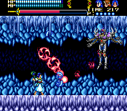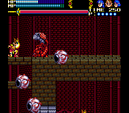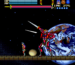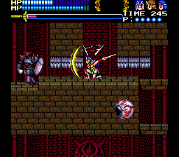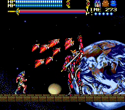Zalude is basically the first boss in the series (on the Genesis) to do everything right. Nice attacks, fun attack pattern, and even makes el-cheapo Cham work her little ass off for the win. He starts the fight by flinging a series of spinny blades across the floor. While they're flashing they can't hurt you, but once they're fully visible and begin flying upward, they'll fling you into the air and do 2 damage which can totally fuck up your attack pattern if you're not careful. Some people might consider this cheap, but they may be forgetting something important. The slide is put to proper use here. The idea is to get close to Zalude and when the blades appear under your character, slide out of the way and then back toward the boss to continue your assault. While the spinny blades are working their evil distracting magic, Zalude throws a much larger and slower blade across the room which you have to jump or duck to evade. He'll sometimes follow this by rushing to the opposite side of the screen. You'll be working on this win for a while, as Zalude has a TON of health, ensuring that this fight is nice and drawn out. It shouldn't take long to learn the pattern, but fun boss fights in this series aren't exactly plentiful so enjoy it while you can.