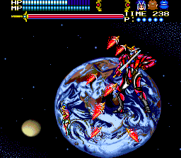 Way to COMPLETELY fucking blow it here. Yuko could have gone from kinda lame and annoying to play as to being completely awesome for her Genesis finale. What the hell was the meaning of powering up the Valis Sword if it doesn't actually do anything for the fucking sword? What a HUGE disappointment. I know this pissed me off as a young'un too, because I always wanted to play as Yuko cause she has bloo hair, but Cham was just so much cooler. Even the cool looking new digs just can't make poor Yuko worth playing much unless you're trying to just make the game harder for yourself.