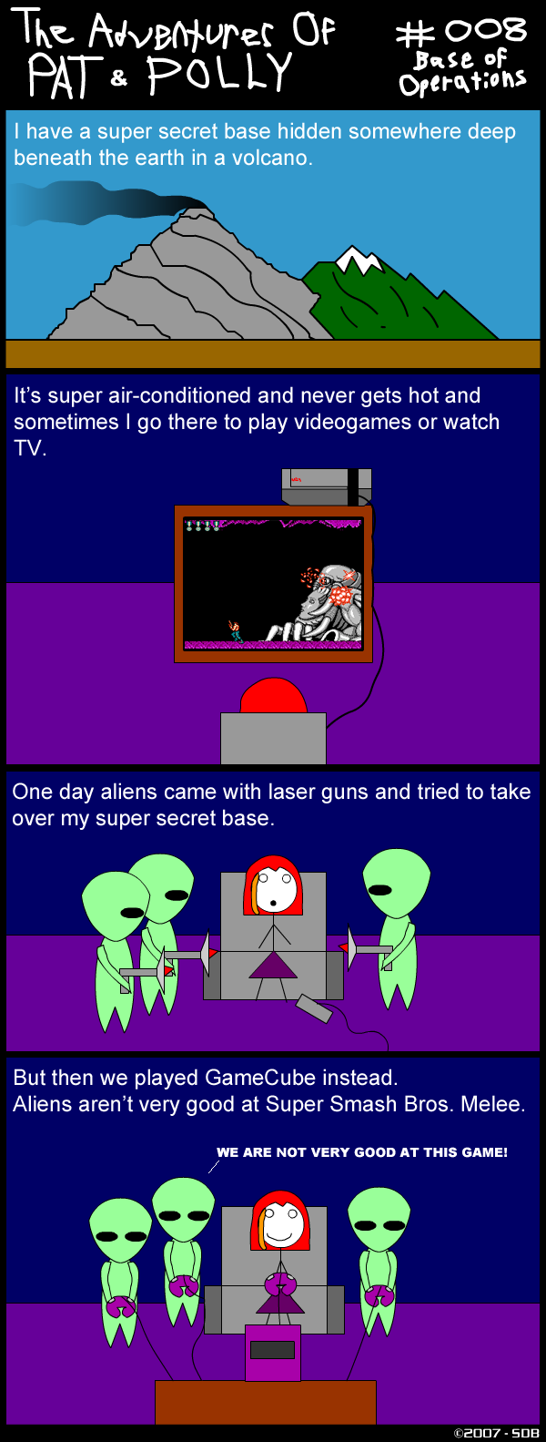 I have no idea why I chose Super Smash Bros. Melee and a GameCube for the comic's end. Polly clearly loves her NES! I've also never played Melee even once in my entire life, so the choices here are a bit astounding even to me!