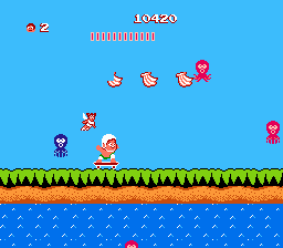 Enemy placement is the god damn work of Satan in this game. Every enemy and stamina draining rock is expertly placed so that when you die, the evil little programmers that worked on this game get a little happy in their pants because of it. The last 12 or so stages of the game are absolutely fucking sadistic and are engineered for the sole purpose of fucking you over. It might be fair if Higgins didn't control like a god damn "oiled up on the slip-n-slide" decoy octopus.