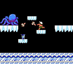 Progression through the game is exactly the same as last time. You'll travel across the 8 islands of the world, each with six levels apiece, and at the end fight bosses much like you did in the last game. Bosses this time actually provide a good challenge. Instead of the simple little fireball attacks they had in the previous games, each one now has one or two unique attacks they'll come at you with in very easy to read patterns. They all put up a decent challenge this time around with only the fourth world's boss being way more of a god damn pain in the ass than it has to be thanks to it being a fucking underwater swimming fight. Fuuuuuuck that guy right in his ear.