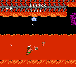 Master Higgins' arsenal is...fairly barfy. All you get are dinky little axes you can throw at enemies to defeat them, but the problem is that they fucking ARC OVER THEM most of the time. You can also obtain an insanley rare fireball that mimics Mario's, but still has an annoying arc to it. the only way you're going to see this power up is either by blind luck or memorization. The eggs that you can get this power up from tend to appear out of nowhere as you're moving forward, so 80% of the time you won't even see the fucking thing OR it'll be scrolled too far off the screen for you to actually obtain it if you DO open the egg. What a fucking load of bullshit.