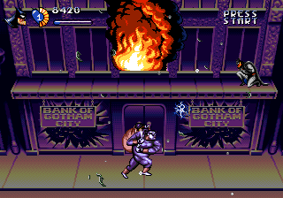 Batman & Robin may be one of the few games that actually looks the part. It looks the part and it does it fantastically. Sure, some may gripe that sprites are kinda small, but our heroes and their foes are so crisp and full of detail it's hard to really call it much of a fault. And given our history this past week with sprites that are just too god damn big, having a lot more playing room definitely feels much better in this case. Backdrops are full of tons of vibrant color and lots of detail and with lots of background animation going on too, it's no surprise that this game really is one of the few that helps immerse the player into that cartoon world and make it feel more alive.