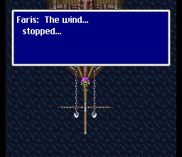 Final Fantasy installment with a consistent sense of humor. Each character has a goofy "surprise" sprite and a two-frame "laughing" animation. The other characters make fun of Butz for being afraid of heights, which is the result of a traumatic childhood hide-and-seek incident. Before Faris reveals herself as a woman, Butz and Galuf are flabbergasted and concerned about why the handsome young pirate captain seems so inexplicably