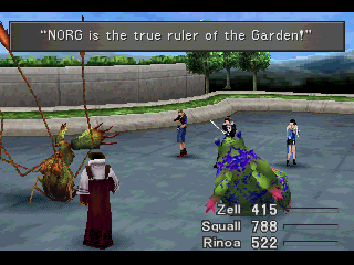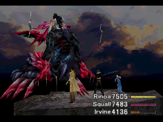 Final Fantasy VI, but never before have summon monsters been such an integral part of the gameplay. Virtually every aspect of your party's battle performance is tied to the Guardian Forces they have junctioned. It sometimes seems a little extreme: Squall can't even toss a potion to Zell without having a GF equipped. In any event, let's take a look at a few of the more noteworthy ones.
