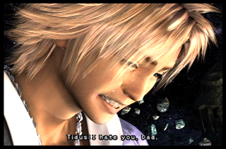 Final Fantasy X's case, the player isn't involved. It's all Tidus. All the player does is prod him along his way until another cutscene gets triggered and Tidus picks up and reads off his copy of the script. The player is reduced from participant to voyeur.