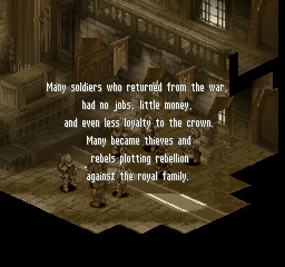 Final Fantasy Tactics starts off with a starkly mundane scenario in an immediately recognizable setting.