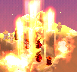 2.) Ramza & Foes. Early on, Ramza's battlefield rivals are not only human, but are linked to him in some way. Watching a protagonist face off against an antagonist with whom he has some connection or history heightens the drama surrounding the event. Algus and Gafgarion are former comrades. The confrontations with Miluda and Wiegraf in Act One have a palpable anxiety about them as Ramza and Delita's conviction begins to falter. The unctuous Izlude is a throwback to Ramza as a military cadet ("surrender or die in obscurity!"), before his crisis and exile. Et cetera, et cetera. These battles are more intense becase there's more going on in the player's mind than "clean up map, move on to next battle."
