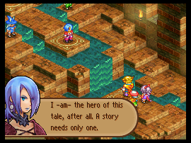 biggest problem, the one that spells doom for the nation, world, space-time continuum, etc. By then our young heroes are the strongest people in the world, so only they can defeat the biggest bigbad. So they do, while affirming the power of love, friendship, optimism, self-determination, etc. The end. No matter who populates the main cast, no matter how you tweak the default medieval fantasy setting, no matter what the midgame plot twist might be, the path virtually always leads from A to Z, with only a few allowable permutations of the letters inbetween. When these games' developers are so chary of going against precedent (even in a franchise whose earliest gimmick was the absence of continuity between episodes), it becomes that much harder to pretend that the story unfolding isn't eminently familiar. (