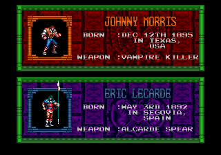 This time things are just a bit different, as you can select from two different vampire hunters. The more traditional cut from the Belmont fabric, whip-wielding John Morris, or a new pretty boy spear-swinger named Eric LeCarde. The differences between the two are not merely cosmetic, as both characters balance one another well in terms of abilities and at certain points during the adventure, will end up facing different obstacles and enemies due to having to take different paths in a stage. This adds a nice bit of replay value. Both characters play roughly the same, but their slight differences in how you have to approach new challenges is what helps keep the game fresh.