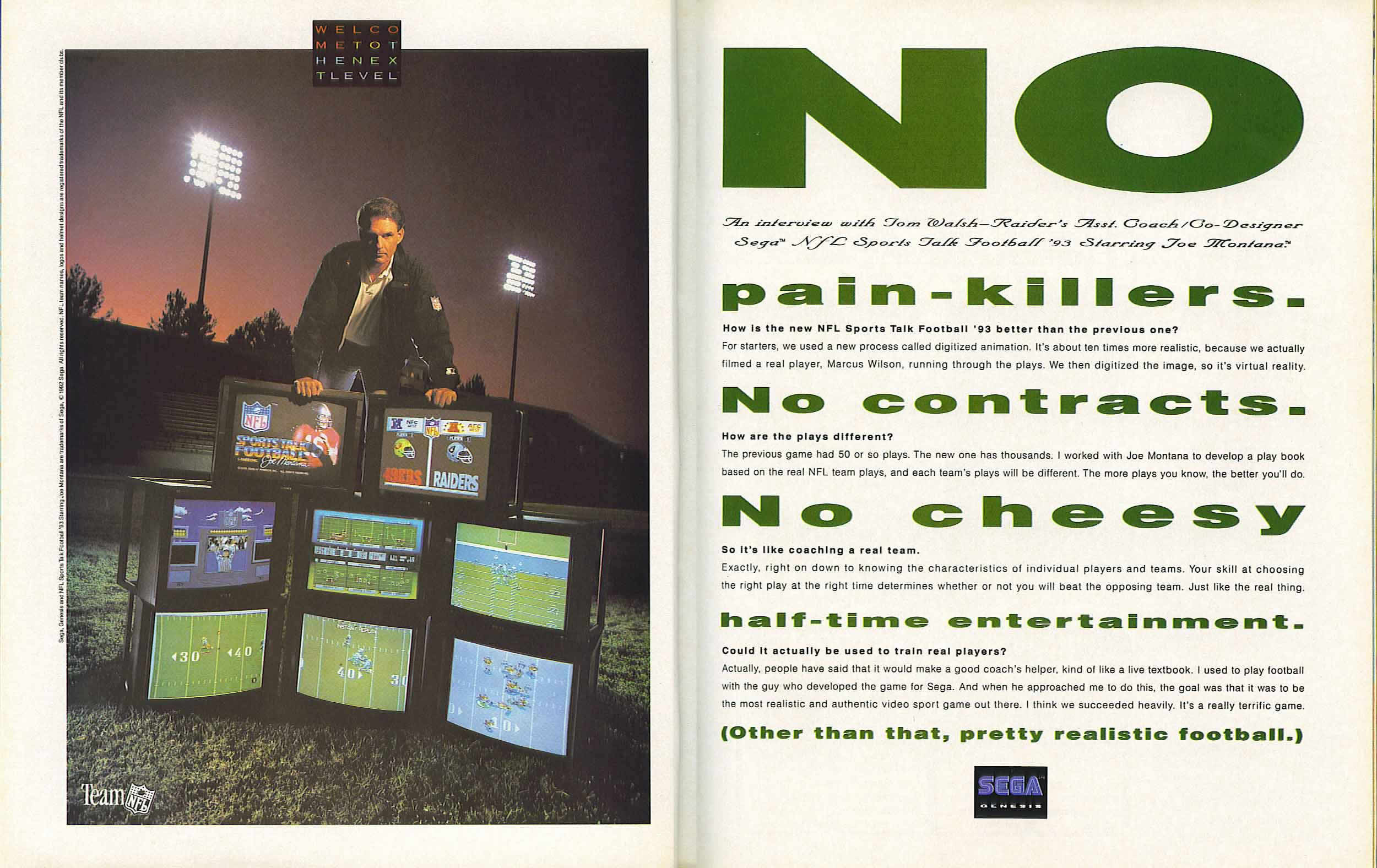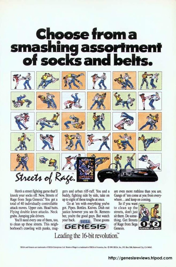 Here are some print ads for the Genesis. Two of which are my favourites. They are for Streets of Rage, Streets of Rage 2, and the other is for Joe Montana Football. The latter two are little mini-interviews that supposedly show off the specific power and ability of the genesis and it's exclusive games. But in reality, it's just a bit of Self aggrandizing propaganda.