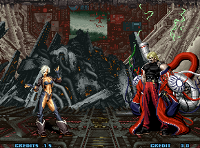 is about KoF that makes it so addictive. The staggering number of characters, maybe? The dizzying speed of the matches? A storyline with the complexity of that of any JRPG? Shermie, May Lee, and Vanessa?