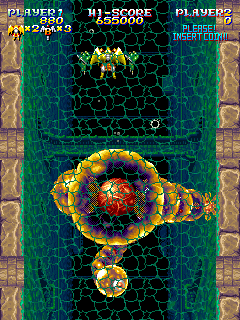 His wide attack fires bombs and would return for Battle Garegga. His