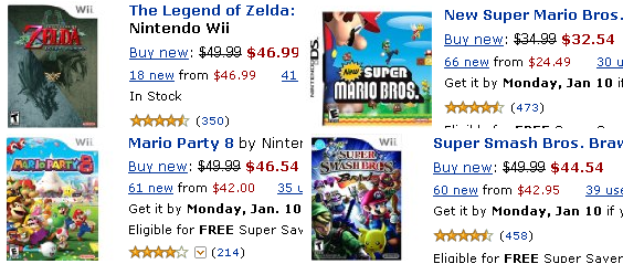 Nintendo first-party releases? Not so much. In fact, since the release of the DS and Wii, I can't think of a single Nintendo-released first-party title I've seen that wasn't still being sold at full price years later.