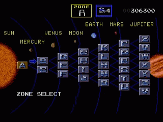 Anyways, the story of this game is your dudes are descendents of planet Darius who now live on planet Orga. You receive a distress signal from other descendents of Darius and go to save them. This is all fine and good except for two things. First off is that all of the bosses in this game are for some reason all based on aquatic lifeforms, a Darius tradition. Secondly, is that when you get to the map screen, you suddenly see that all of the game actually takes place in our solar system.