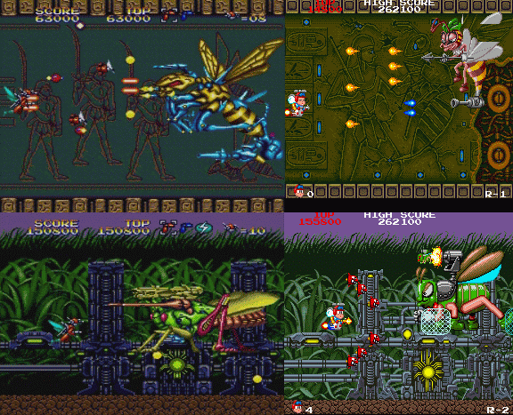 Another game with no spaceships! This time you take control of some robotic flying bug thing, and fight against tons of other enemy bugs. Although this game starts off slow, it quickly picks up and becomes one of the more hectic shooters thus far. There are only 5 stages, but each of them (except stage 2) has two or more segments where you fly indoors into a totally different environment, splitting each stage up nicely and reducing the repetition. The graphics are colorful and everything looks nice and sharp all around.
