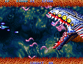 Salamander 2 is a vertically scrolling shooter which may have a story