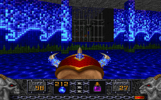 One difference is that the enemies were given better attacks. The gargoyles were flying imps, the golems were the pink demons with some given a projectile attack with limited tracking, and the Iron Lichs were Barons of Hell with 4 attacks (counting melee attack), I freaking hate those tracking tornados. The weapons were more balanced; the super weapon wasn't an insta-kill attack for example. To survive on the highest difficulty levels, you had to use certain weapons against certain enemies because there wasn't that much ammo lying around and you'll waste too much ammo using the wrong weapon or need the ammo of more powerful guns for stronger monsters. Heretic also added features like an inventory, and after ever stage, the number of items in the inventory was reduced to 1. This meant that you shouldn't hold onto your items, you should use them. I have no idea why someone would want 5 tomes of power, but that's just me. Heretic has the ability to look up and down, before the mouse look, and environmental dangers beyond damaging floors and crushing ceilings: ice to slide on and wind to push the player and projectiles. Let's all not forget about the and the ability to fly, which single handily forced better level design, Doom had lots of tricks that became broken the instant the player could hover 5 feet off the ground.