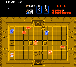 Another interesting thing that this game introduced was the idea of using an inventory to defeat certain monsters. It was revolutionary to make a monster vulnerable only a select weapon, and it inspired experimentation. Players would throw down bombs and shot arrows to see if it could one-hit-kill an enemies or bosses. Almost everything in this game had never been seen by people anywhere before Zelda. This game just gets into your mind and never lets go, I still see people playing this game, and everyone still remembers where everything is. Where all the moblin 'It's a secret to everybody' spots, where the old women are, and how much money you need to take into dungeons to buy more bombs or when you get mugged.