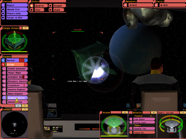 And those are the real stars of the show: The ships. Even for being as old as the game is, all the ships still look pretty badass. They put so much detail into each one. Although the scale isn't gonna match up, they each look as they should, and that's all that counts. Aside from the Story Mode, the game also has Multiplayer, and Quick Battle. I'm not an avid online gamer, so I stick mostly to Quick Battle. In Quick Battle you can literally set up any kind of fight you so desire (or however much your computer can handle). Not only can you fight whatever you want, you can also play as other ships (though your bridge will always remain as it is in story mode). The game already has an impressive array of space stations, starships, probes, asteroids, and other objects you can pit yourself against in battle. And I can't even begin to mention all the levels you can use as backdrops for your conflicts, including nebulae, which being inside of can eventually destroy your shields, and then your ship.
