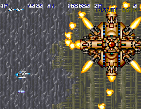 ship and taking it apart until reaching the weak point. In Thunder Cross,