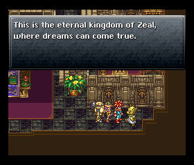 Chrono Trigger's visuals truly are. While the big set pieces -- the courtroom, the solar eclipse at Death's Peak, the moon over Magus's Keep -- are impressive, the real eye candy is in everything