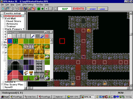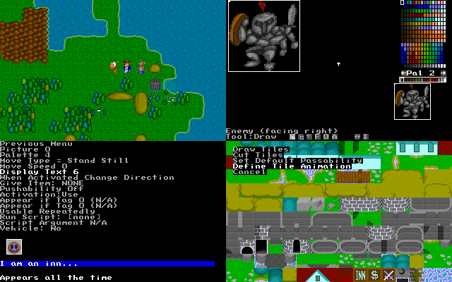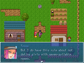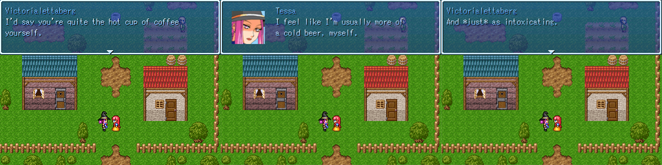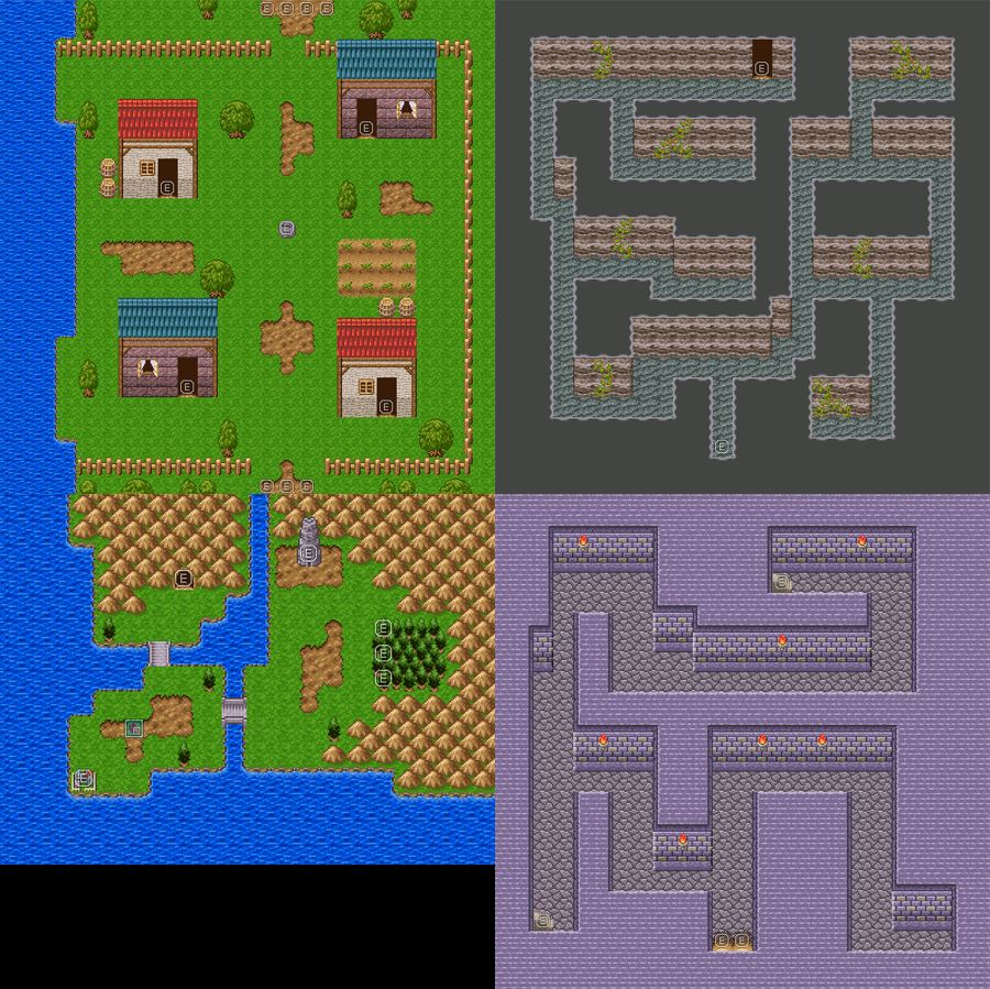 RPG Maker 95 and O.H.R.R.P.G.C.E. respectively. Now that's the good stuff... The solution? Game jams! They're a great way to keep your scope down, because you're often on fairly short deadlines to put something out. They're conducive to on the spot creativity and cute smaller games that I think feature a very concentrated dose of someone's gamedev voice. My only experience with game jamming prior to this game was Operation K.A.T.B. for Ruin Jam back in 2014. In early February, John got bulled into kicking up his own game jam, the Cookie Cutter RM2k3 Jam. As the title implies, it's a gamejam where devs were tasked to create a game in RPG Maker 2003, with the catch being you could only use the maps provided in the template project. I scoffed at this at first because, boy howdy, do I not like RPG Maker 2003. For the brevity of this piece I'll keep my nuanced thoughts on that to myself, but a lot of it is to do with hating the combat system and the new artistic direction some of the default assets had taken. But man, oh man... that combat system... ![]() 2k vs 2k3. Downgrades. Downgrades all around! John also ended up somehow lucking into RPG Maker 2003 going on sale for a crisp $2 shortly after the event started, which suddenly opened up access to lots of people making games. I had no intention of participating largely due to my issues with RM2k3, but one morning, I jumped on the $2 sale and opened the template maps up and the idea for this game just immediately hit me. A game about hating RPG Maker 2003 and being forced to be inside of a game created with it. In a way I guess this game's narrator and Tessa are stand-ins for John and myself. ![]() A small sampling of the template maps provided by John. The jokes and character tone flowed pretty immediately. I felt that writing inspiration again that I'd felt when writing Her Lullaby and Afterward. Everything I typed in just felt right. Once I'd finished the scene where the antagonist is introduced, I knew I was bought in. The structure of the game started taking shape in my mind. I had a rough idea of what I wanted every area in the game to be and planned to use every map provided. I needed to think of ways to keep leading the player around, dropping some carrots on sticks here and there, and then solving those problems with satisfying (read: stupid) solutions. I wish I could tell you that I planned any part of this game in any way, but I'm being 255% honest with you in that this game was entirely improv. From the dialogue to the solutions to progress through the game, I just let my mind run free on the playground John had provided and let the game start to take its own shape. I knew the tone I wanted to write with, and I had a rough idea of how I wanted the game to end, but every step along the way was either something that hit me off-the-cuff while I was testing things in the editor or just random thoughts I'd have in the shower or working on something else. I wasn't entirely sure it'd all fit together the way that I think it ultimately does. Being an RPG, I still wanted to have combat, despite me hating RM2k3's combat. My solution to the problem was to just strip as much out of it as I could to make it as mechanically shallow as possible, but have all of the encounters still feel like they're close fights, despite the fact that you can auto-battle through most of them. As for approaching the characters, quests, and dungeon aspects, the question I kept asking myself was, "Can this be dumber?" This led to some of my favorite lines being written, Coffee Joe and his hot air balloon becoming a thing, and other one-off gags like going to the tower before the finale. There's some great character stuff in here I really like a lot too. I'm not sure how well it came across, but Dark Dead Emperor Brad is actually deaf. He never responds directly to Tessa and simply monologues at her, and even mentions her words falling on "deaf and dead ears". He also never hears her banging on the door to the tower or when she really sets things off during the final dungeon.