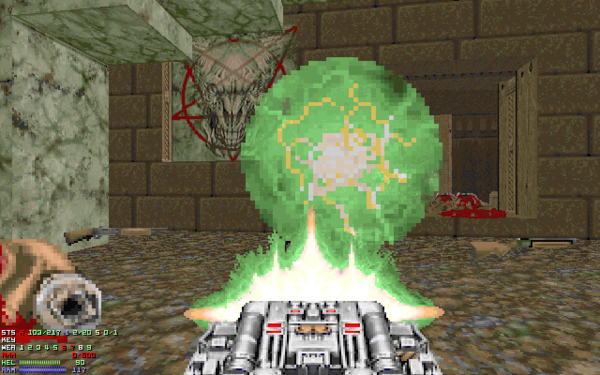 The big fucking gun, the BFG9000. True to its name, it is big. The beast looks like it's got quite a bit of heft to it, and at the time, it's shots looked awesome, with very clear results. In a time when an FPS meant killing everyone in front of you, the BFG did exactly that.