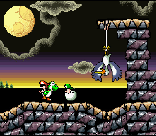 Like, it's just you and this fucking baby the whole game. You've heard the damn thing cry the whole way and you're finally almost there. The Yoshis have all pulled some excellent shit to make it this far, and now you've got a hundred foot tall Baby Bowser and a few shaky platforms between you and total victory. It's just one of those games where, when the credits start rolling, you sit back and smile and feel really proud of yourself.