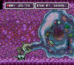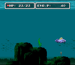 The first part of the game takes place in the ancestral oceans of the world. Here you who are a little fish-missing link wannabe who should go from here to there swimming and eating little species to earn E.P. and fight versus a gang of super sharks that don't want the life go beyond the sea, nothing special.