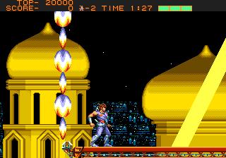 Anyway, so yah. The level design and game play in Shinobi III are absolutely awesome. Now Joe has the ability to wall jump, kick downward, dash and slash, and stick to ceilings alongside of all the shuriken tossing and rainbow shuriken tossing moves from Revenge of Shinobi. Now don't get me wrong, shuriken are cool and all... BUT NOT COOL ENOUGH TO MAKE AN ENTIRE GAME ABOUT THROWING THEM! So yah, alongside of all those slick new ninja moves, Joes got some cool levels with hot challenges to use em on. In this game you will fight entire armies, blitz enemy fortresses and bio-weapons laboratories, outsmart your way out of a trap filled lair of enemy ninjas, take out a HUGE flying battleship, and more. The levels are brilliantly arranged to give you a true challenge every time, while flipping the script on you after every level to keep you guessing.