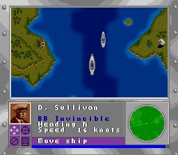Quite possibly one of the slowest games in existence, but still one of the best. It gives a new spin on Battleship the board game, giving full reign of a predetermined amount of vessels for each mission, with an objective to accomplish. The game is turn based, a turn ends when each ship has made a move, and then it switches over to the opposing side. Ships to ship battles are entertaining, as you get full control over each ships devastating broadside, and aim is key. Do you take out their guns first and render them defenseless or knock out their engines so they're an easier target? Each ship's vitals are at different locations so memorization is a good idea. And, if they damage something on your ships you'd better hope it can be repaired, because a ship that's dead in the water is completely useless. My friend and I spent hours playing this, and we never got past Raid on Mindino Airfield. Even playing it now on an emulator I can't pull it off. This game I love for its challenging missions and unique game play. Granted, a few things could be improved on, for example you only have a limited amount of turns. That's why I can't beat Mindino Airfield I keep running out of time. For those of you strategically challenged, get used to seeing "ALL HOPE IS LOST".