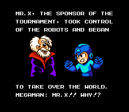 Mega Mans 1 through 3 had you facing off against mad scientist Dr. Wily, as he tried to take over the world with a bunch of themed robots. Now Mega Man 4 still had you fighting a bunch of themed robots, but they were reportedly the creation of a crazy Commie named Dr. Cossack. Except, guess what? Dr. Wily was blackmailing Cossack and was the true villain all along. In Mega Man 5, Mega Man's "brother" Proto Man went heel and tried to take over the world with a bunch of themed robots. Except, guess what? Dr. Wily was blackmailing Proto Man and was the true villain all along. When you boot up Mega Man 6, you get a prologue story. The mysterious millionaire "Mr. X" holds a robot tournament. For fun or something. He then proceeds to reprogram the themed robots that won the tournament and try to take over the world, prompting thousands to stare at their TVs and sarcastically proclaim "GEE I WONDER IF MR. X IS BEING BLACKMAILED?". In that case, you'd be wrong; it's revealed that Mr. X is Dr. Wily, wearing sunglasses and a fake beard. What. This brings up several nitpicking plot details, like how nobody notices this mysterious millionaire is Dr. Wily in sunglasses and a fake beard, but let's skip those and cut to the real question; Really? Really, Capcom? You were THAT strapped for ideas on a new bad guy? This lazy creative attitude pops up with the new bosses as well, and is the reason MM6 is so stale compared to the older games; they just didn't care anymore.