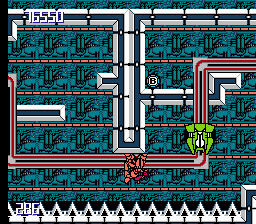 If all that "challenge" talk has scared you off, hear me out first. Yes, this game is tough, but you are (not) alone. You're given a decent supply of power-ups you can collect throughout all of the game's stages that increase your odds of surviving including shields, an extra plate of armor that'll let you sustain one more hit than normal, a powered up laser beam, and a cool little doo-hickey that turns your jumps from the top to bottom of the screen (and vice versa) into a deadly flaming fire-tackle kinda move that can take out a lot of enemies in one hit. It won't kill 'em all, but quite often, it'll be the one move you forget about when trying to get yourself out of a shit pickle of a situation, so remember it and use it.