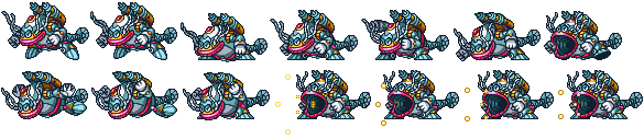 Bit only has seventeen frames to speak of, Crush Crawfish's claws and feet are the only parts that animate, and Volt Catfish barely alters his stance in all of his attacks.