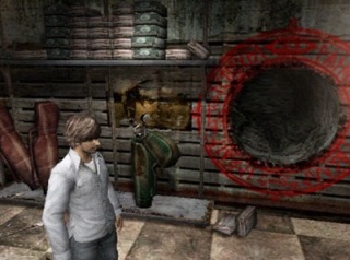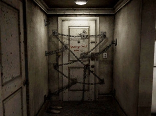 Now, the first thing you might want to make note of is that unlike the prior three titles, you are not allowed to freely explore the town of Silent Hill. Hell, for the most part I don't even think you are in Silent Hill at all. Anyway, how the game progression works is that Henry starts out in his room, he discovers a hole that mysteriously appears somewhere in his apartment, and going through it, he arrives at a fixed location.