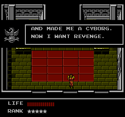 The basic gameplay when you're in normal mode (Non-side scrolly) is actually tried and true metal gear gameplay. You can and will get fucked by not being prepared for certain things. Like running out of Truth Gas when you need to interrogate an officer, not enough rations/oxygen/bullets. The programmers and designers didn't do a good job of making shit real accessible till the last part of the game. I got fucked rotten by the first boss until I found a little friend I like to call "Game Genie Codes".